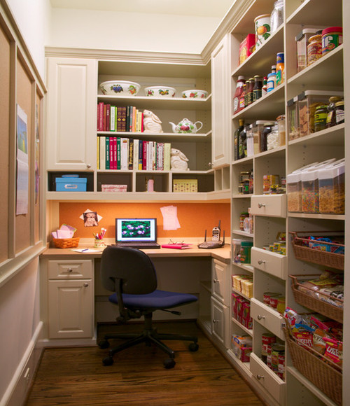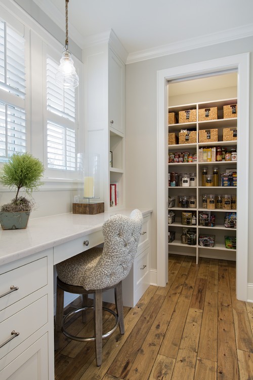 There are some pantries that are made out of nooks and crannies – perfect places for pantry desks. Sometimes, desks are located near the pantry in a quiet corner of the kitchen.