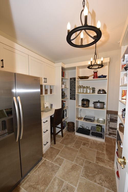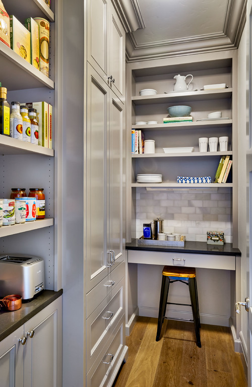 Pantry desks can hold receipts, cookbooks, loose recipes, or even be called into duty for a charging center for electronic devices. If the opportunity is there, consider a valuable desk nook for your organization needs.