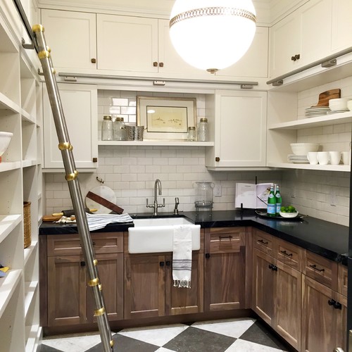Get to that top shelf with ease using a rolling pantry or kitchen rolling ladder. More commonly known as “library ladders” – named for ladders used in libraries for the assistance of reaching tall bookshelves – they have become a more frequent feature in new homes with taller ceilings.